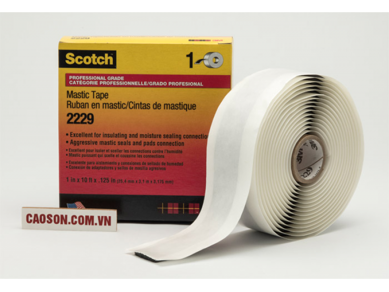 - Băng keo điện 3M mastic scotch 2229 là loại băng keo dày 3.2 mm, dẻo, dai, rất dính, dễ bám theo các bề mặt đi kèm với lớp lót rất dễ tách rời, chống nước, chống ẩm cực tốt.