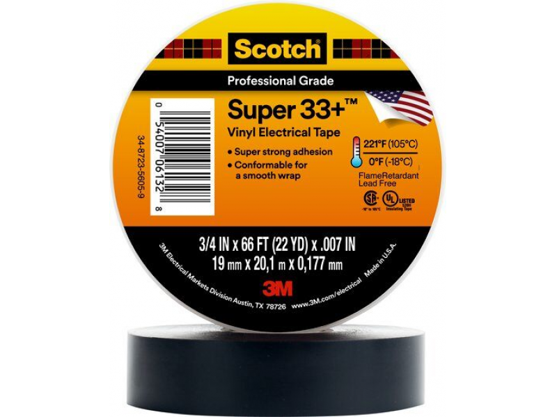 - Băng keo điện 3M Scotch super 33+ là dòng băng keo điện cao cấp (1,150V/mil) có khả năng chống cháy và thích hợp với mọi thời tiết.