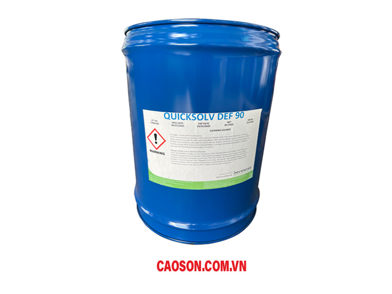 - Quicksolv Def90 Inventec là chất tẩy rửa công nghiệp đa năng dùng để làm sạch thủ công các loại dầu, mỡ bôi trơn, cặn hữu cơ và cặn thuốc hàn. Nhờ sức căng bề mặt thấp và các chất phản ứng, nó cho phép hòa tan hầu hết các chất ô nhiễm hữu cơ. Sự bay hơi nhanh của nó cho phép giảm đáng kể thời gian làm sạch.